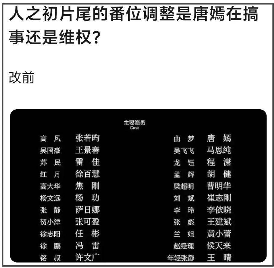 不过还是要强调一下,外人无法确切了解番位调整是剧方行为还是明星团队授意,就随口吃瓜吧。